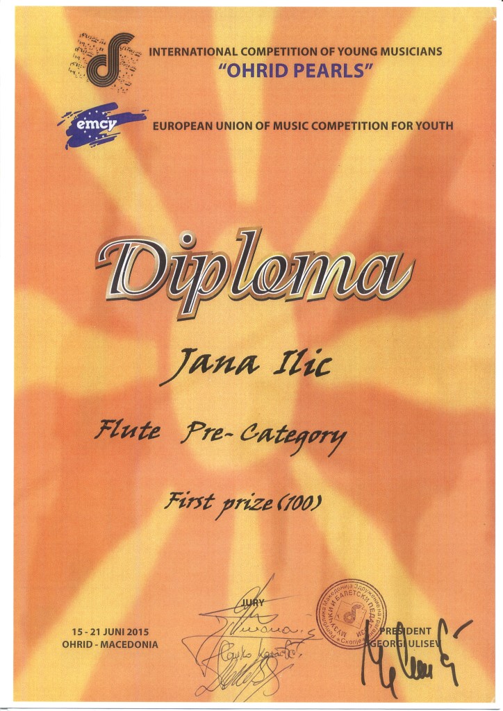 Kategorija solisti: Jana Ilić, III raz. flauta I nagrada 100 poena