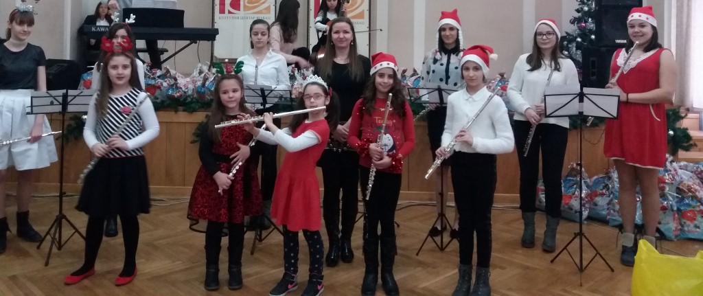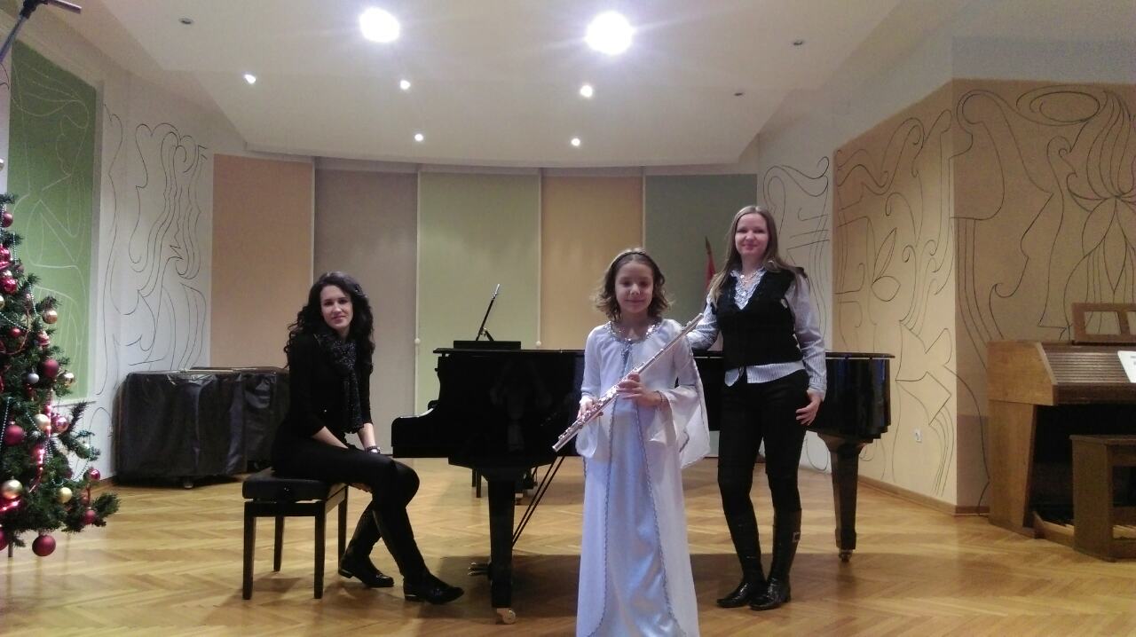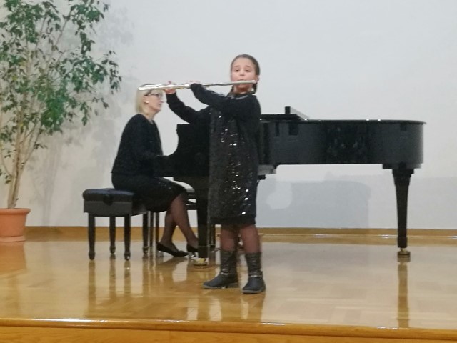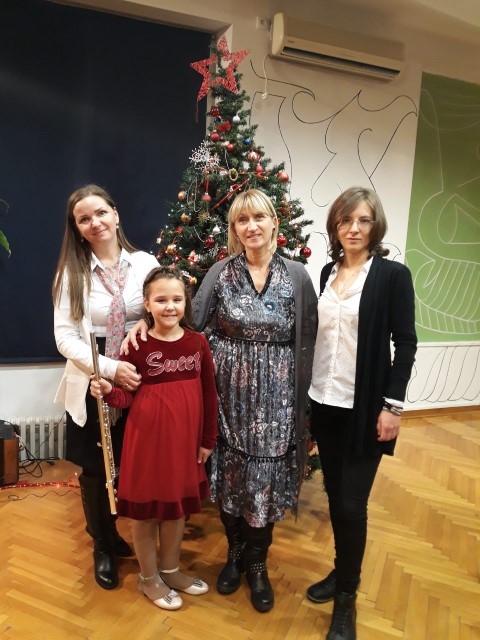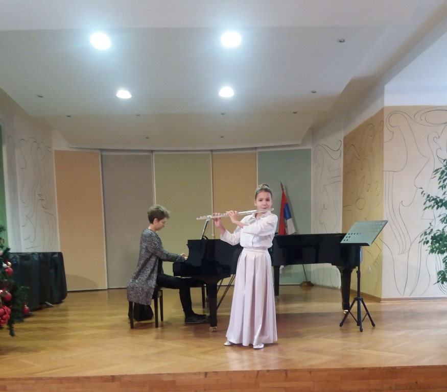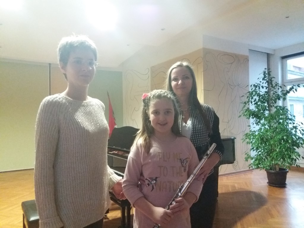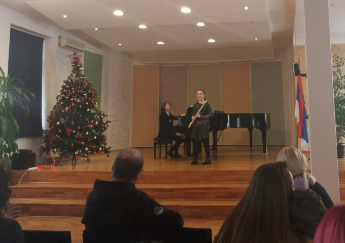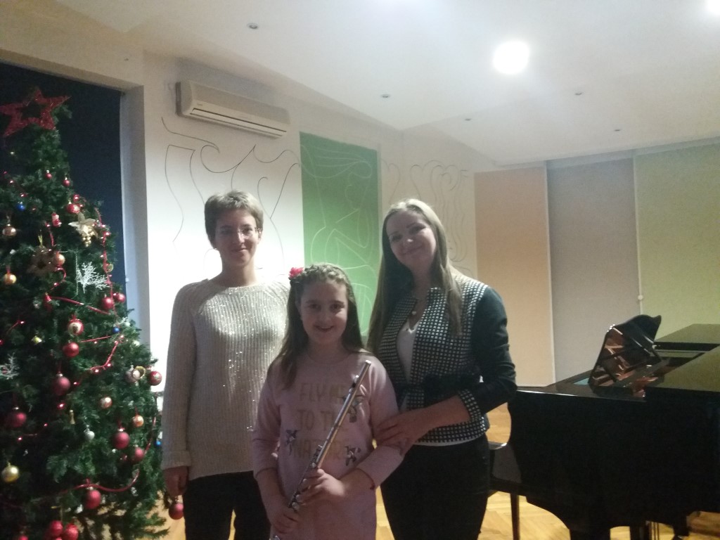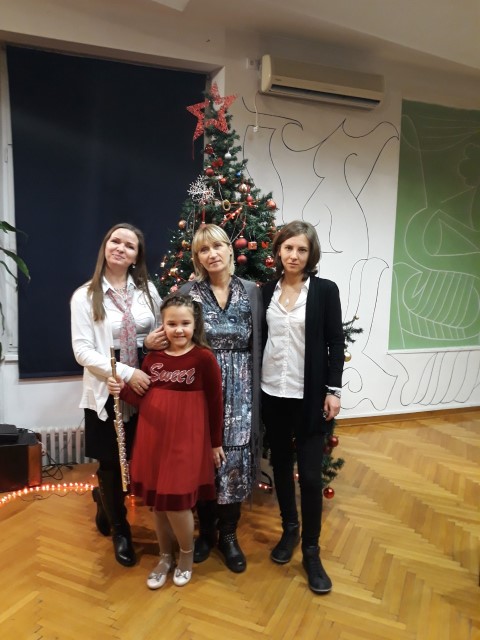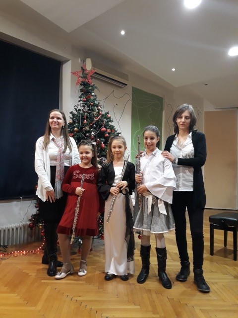 Na koncertu su nastupile četiri najmlađe flautiskinje iz moje klase: Emilija Tojić, Matilde Andriolo, Nađa Živković i Aleksandra Stojićević izvodeći solo kompozicije uz klavirsku pratnju Emel Hasanoglu, prof.