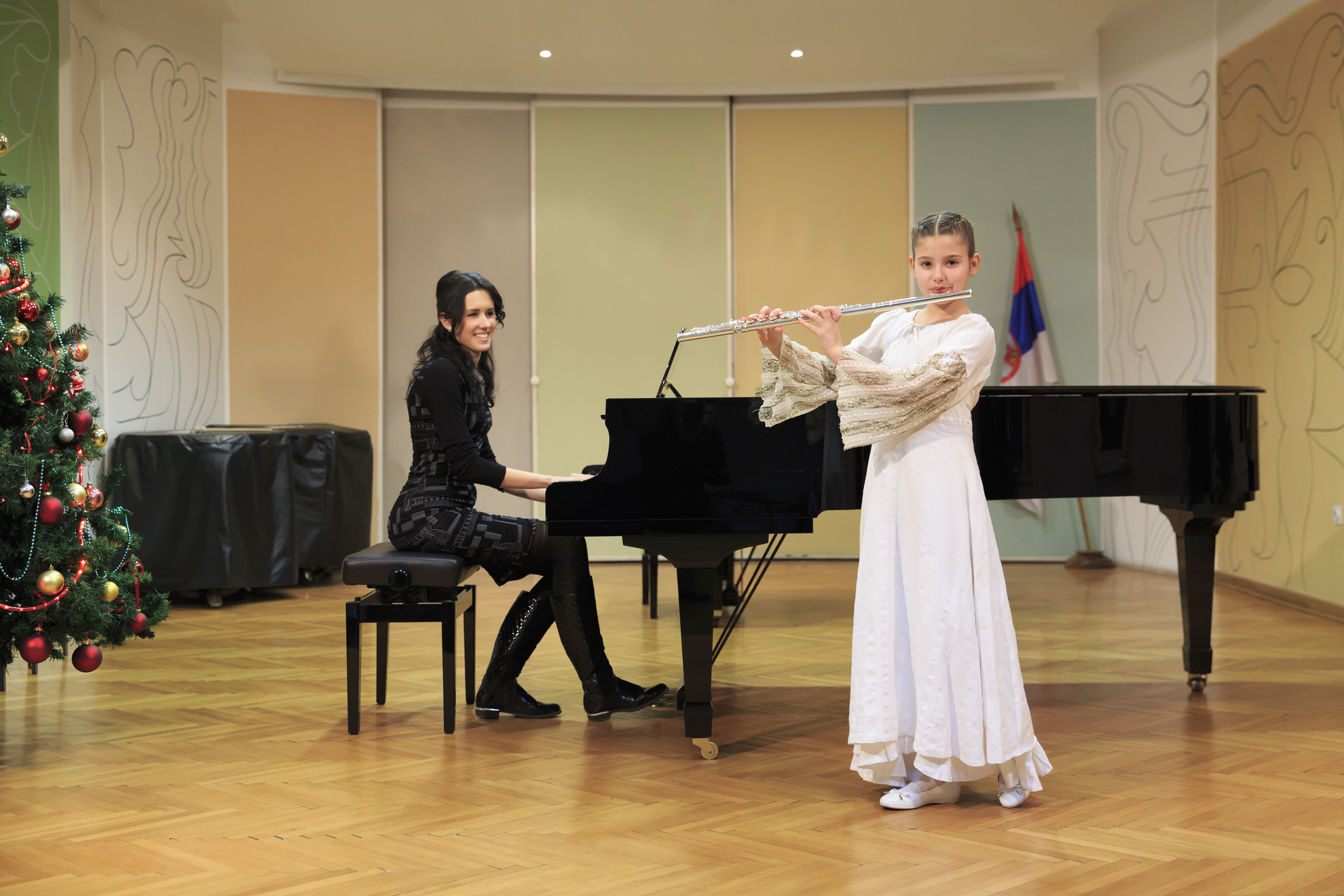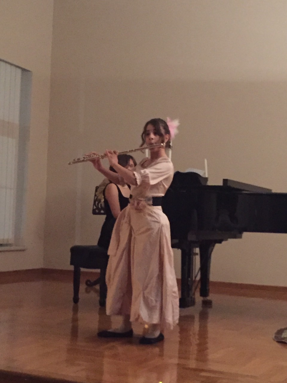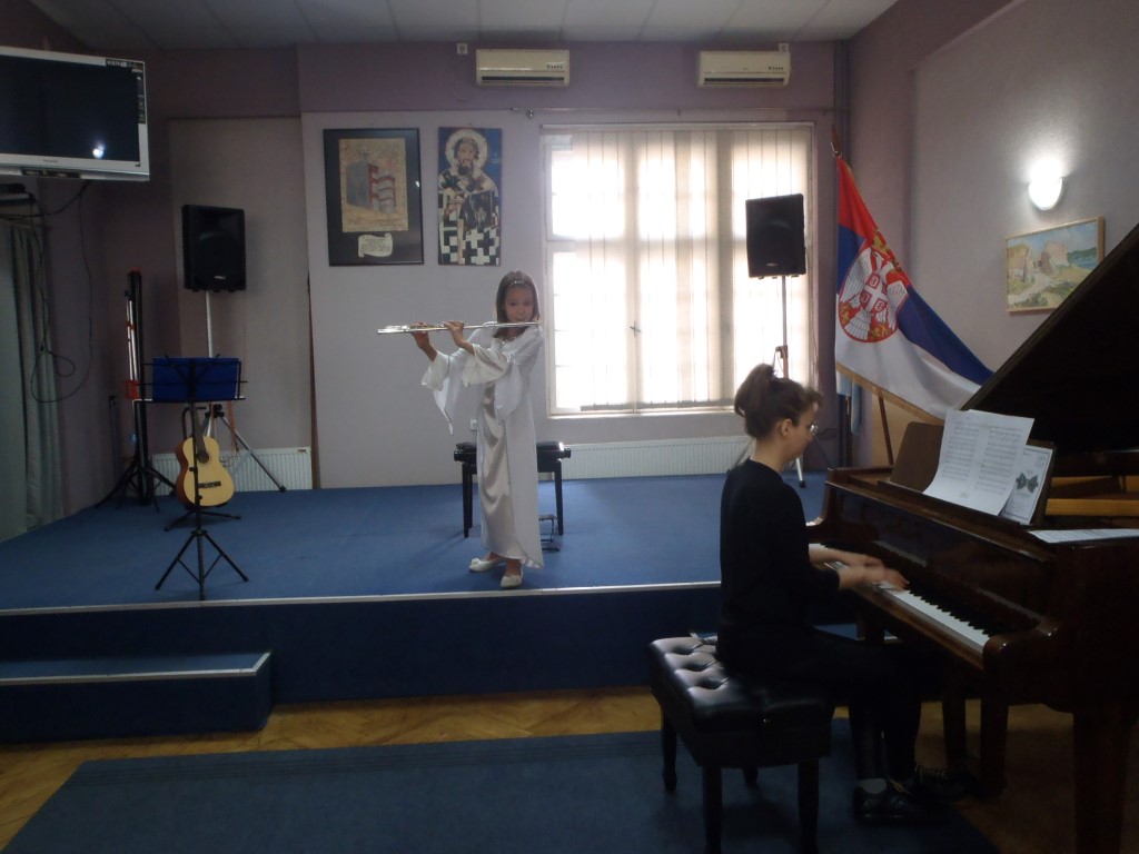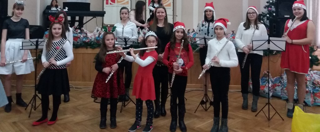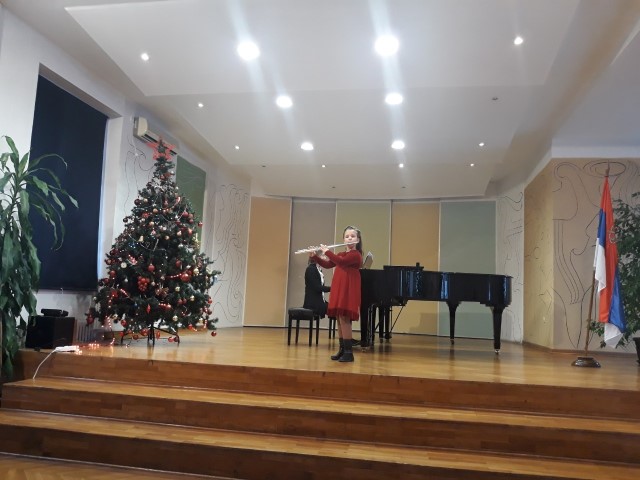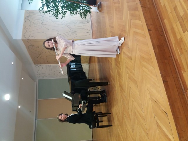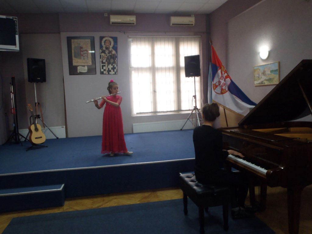 Na koncertu su nastupile četiri najmlađe flautiskinje iz moje klase: Emilija Tojić, Matilde Andriolo, Nađa Živković i Aleksandra Stojićević izvodeći solo kompozicije uz klavirsku pratnju Emel Hasanoglu, prof.