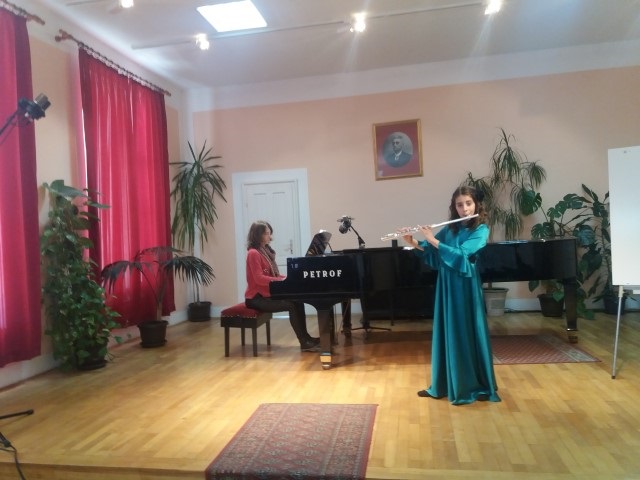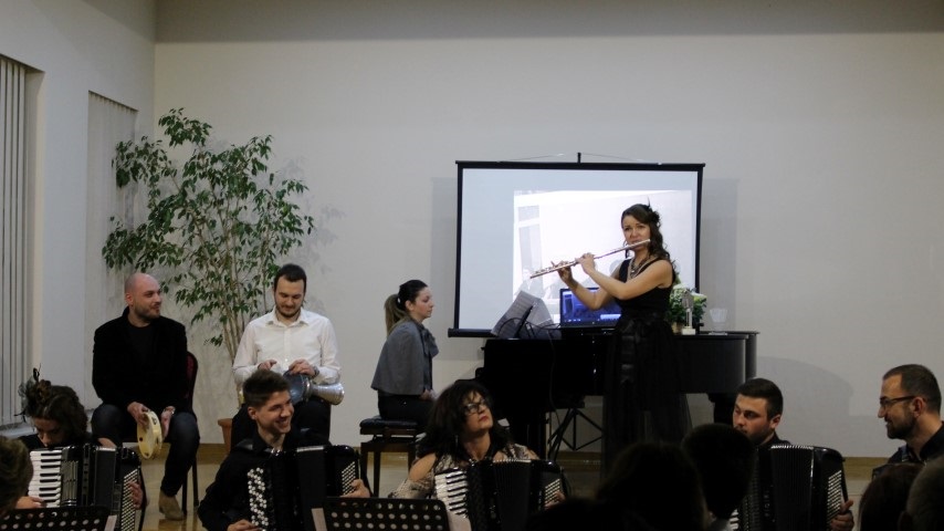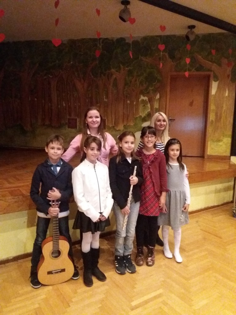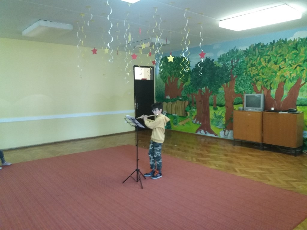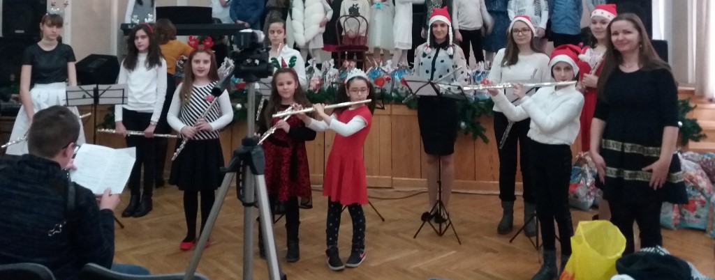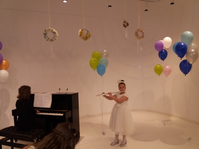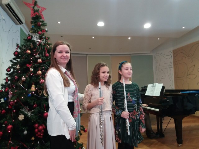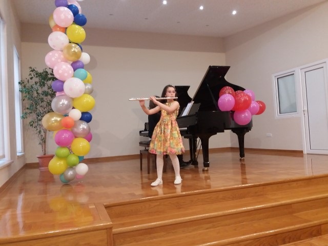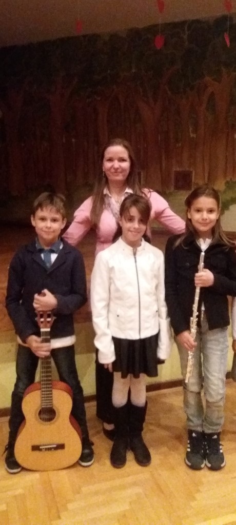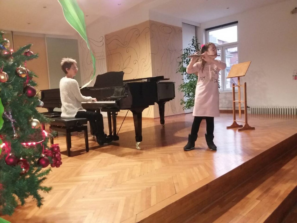 Na koncertu su nastupile četiri najmlađe flautiskinje iz moje klase: Emilija Tojić, Matilde Andriolo, Nađa Živković i Aleksandra Stojićević izvodeći solo kompozicije uz klavirsku pratnju Emel Hasanoglu, prof.