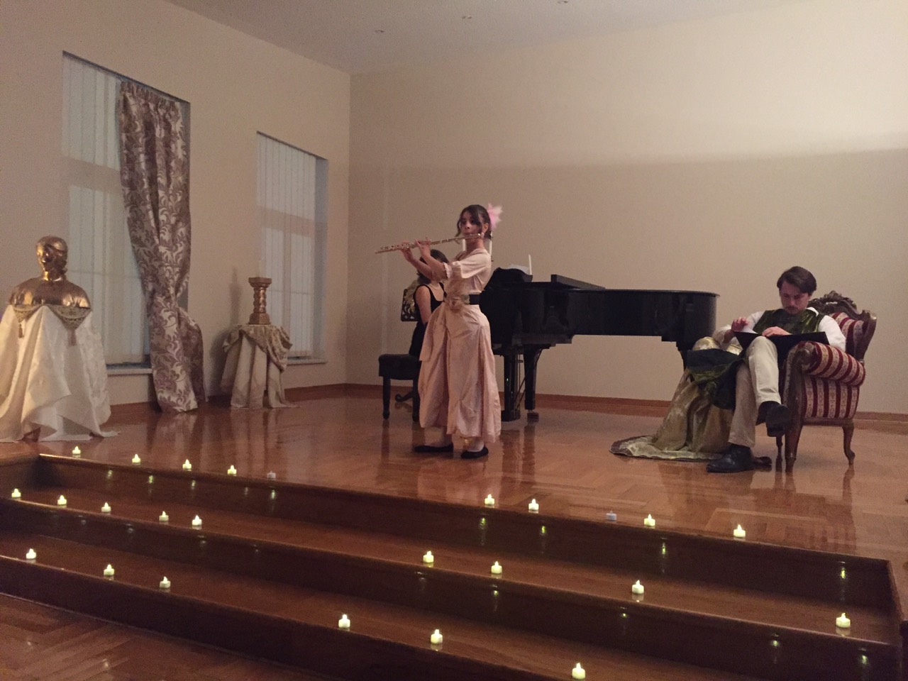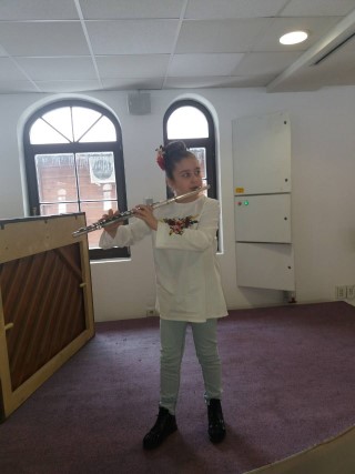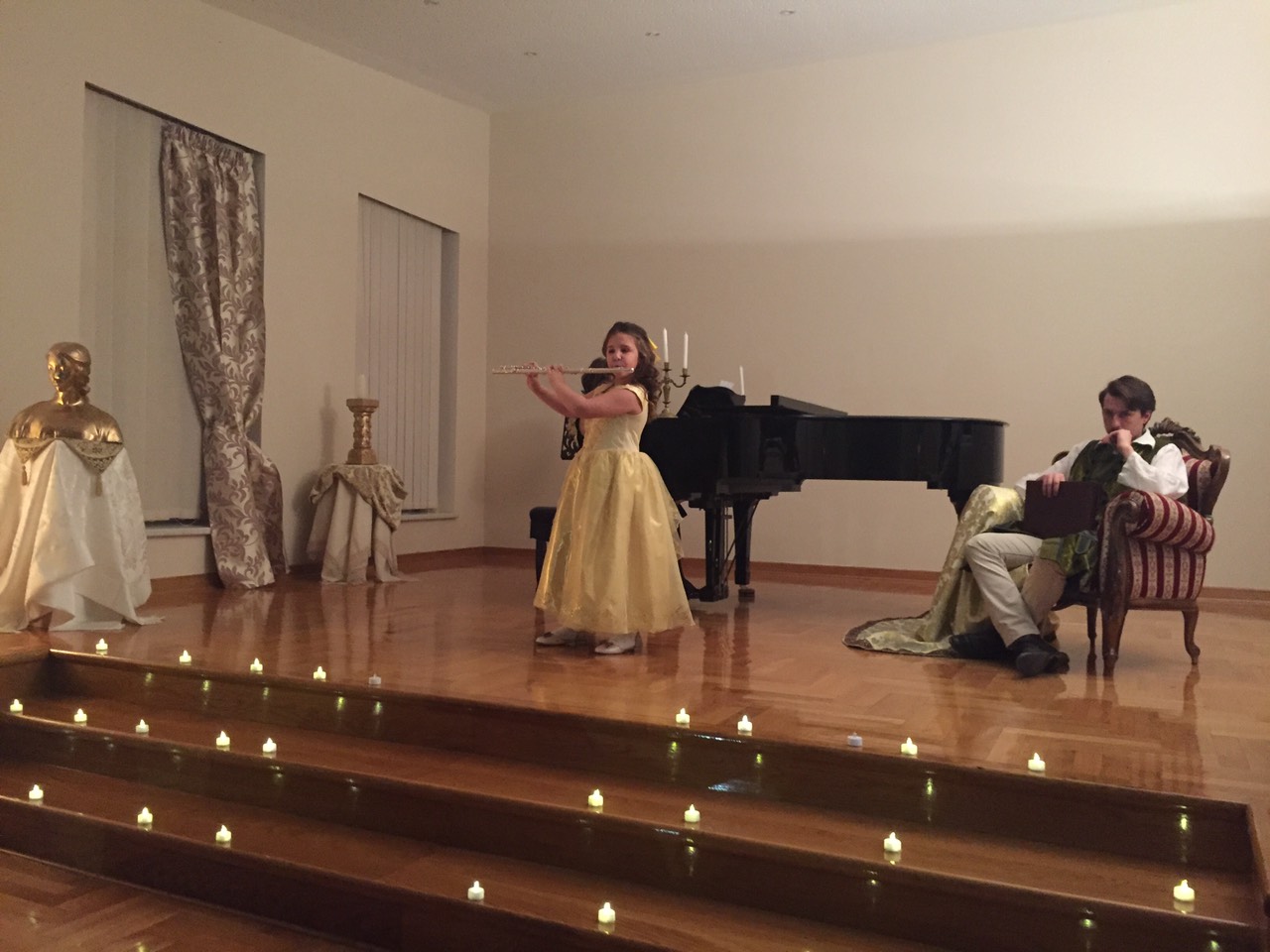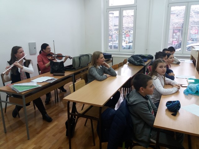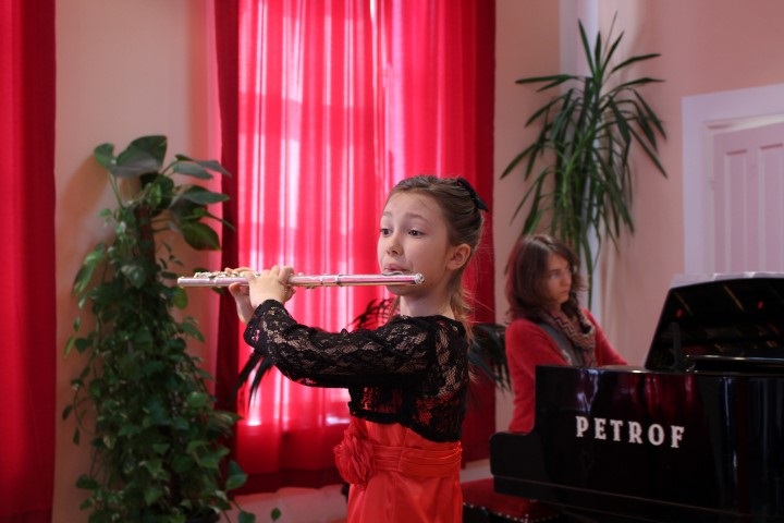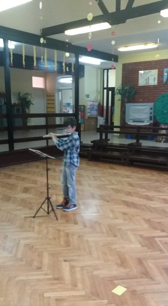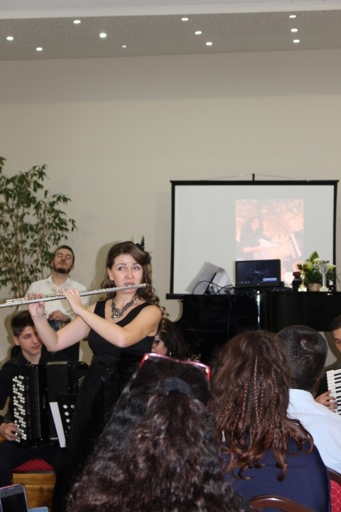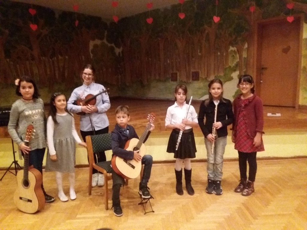 Na koncertu su nastupile četiri najmlađe flautiskinje iz moje klase: Emilija Tojić, Matilde Andriolo, Nađa Živković i Aleksandra Stojićević izvodeći solo kompozicije uz klavirsku pratnju Emel Hasanoglu, prof.