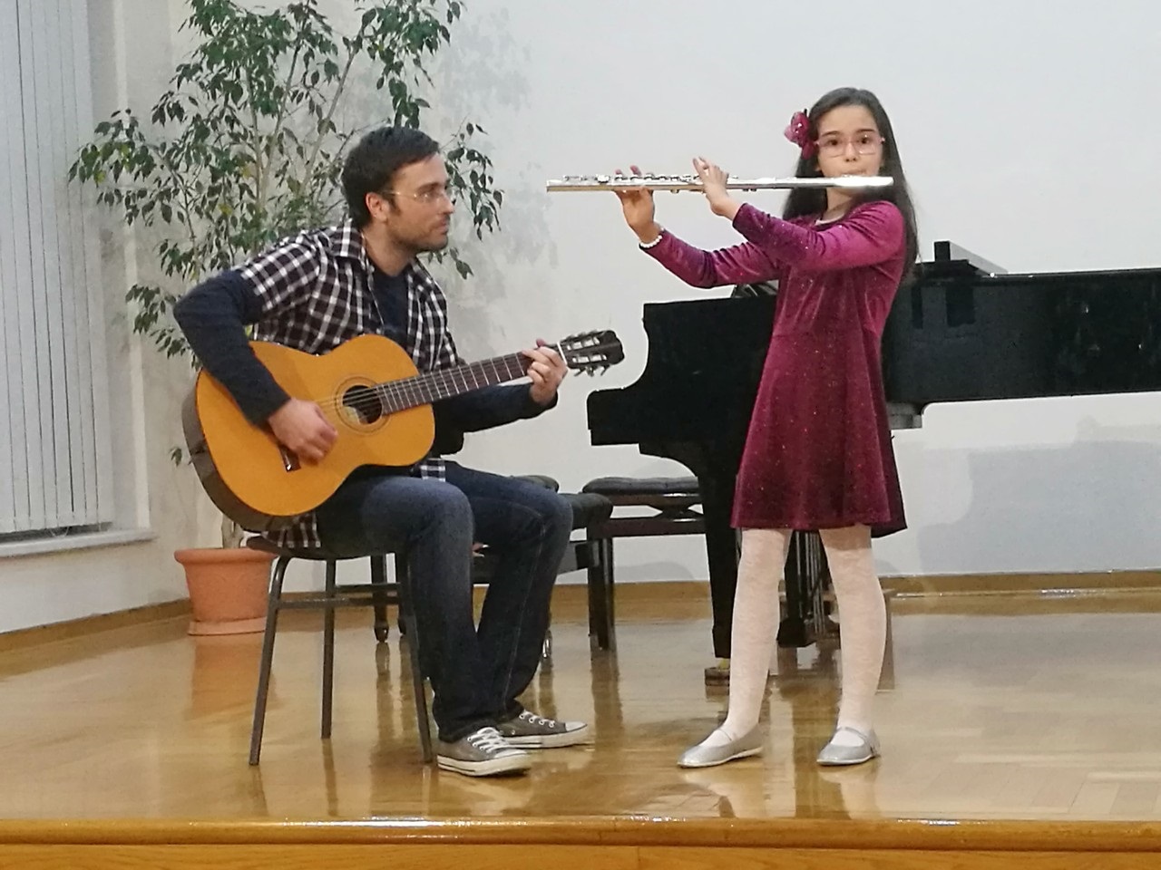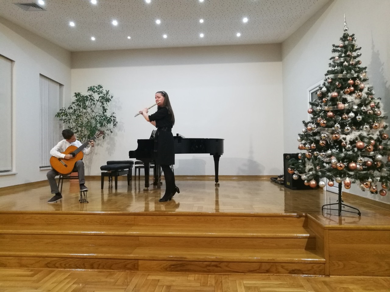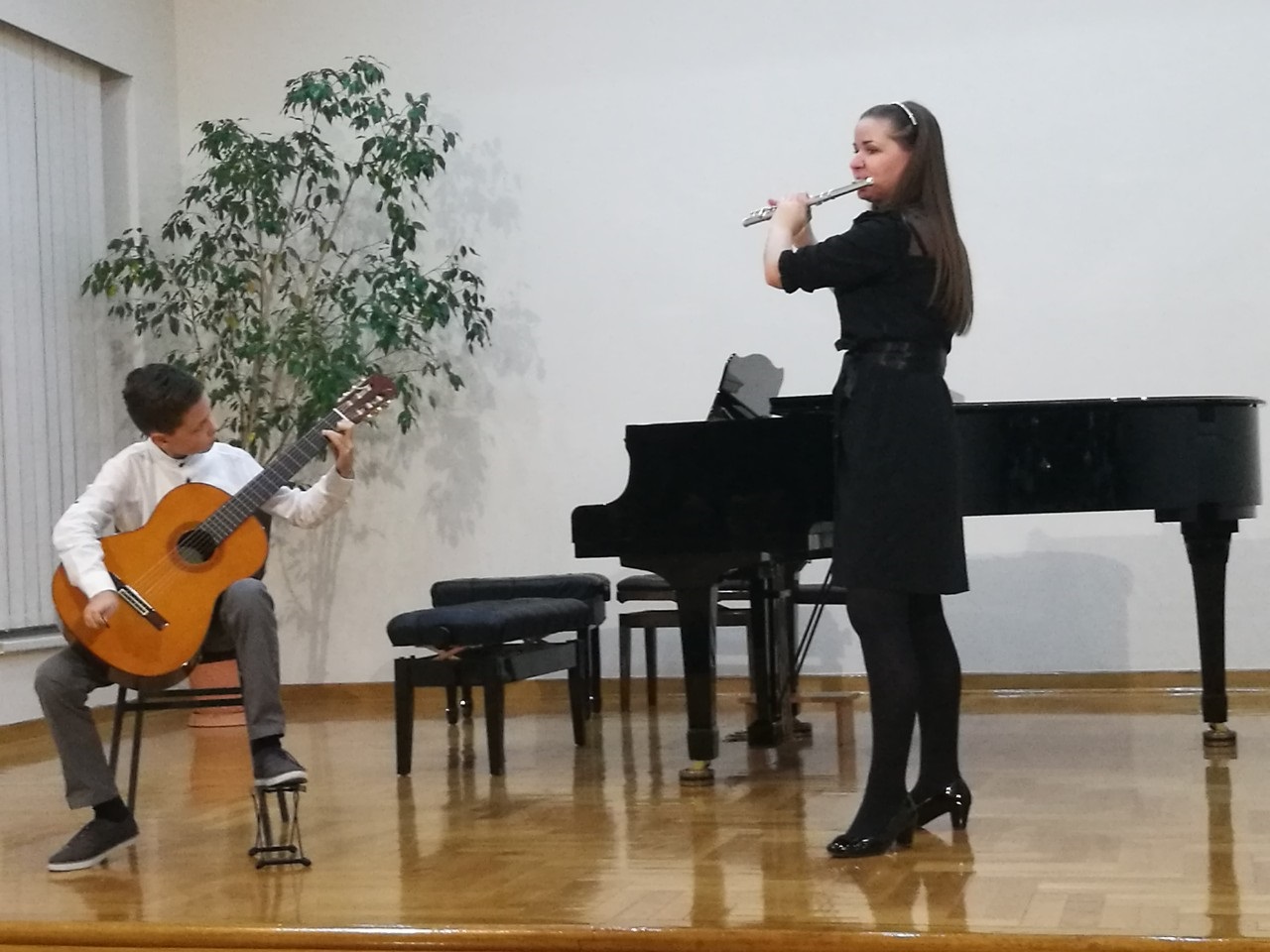 Koncert je otvorio najmlađi kamerni sastav muzičke škole - duo "NN" (Nađa Živković, flauta i Nikola Prica, gitara, klasa: Biljana Prica, prof. i Stevan Jović, prof.)