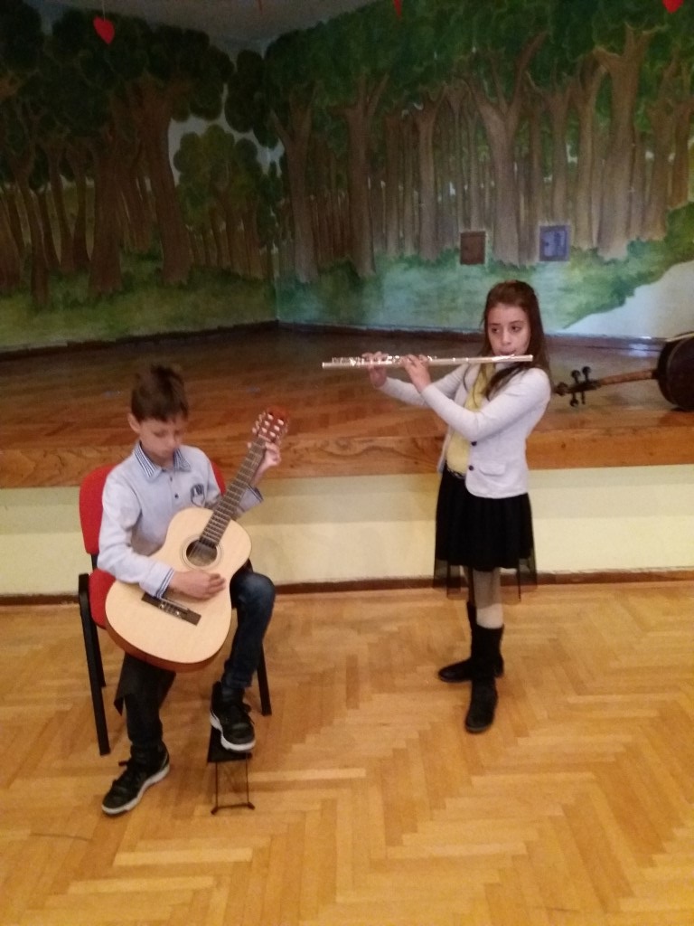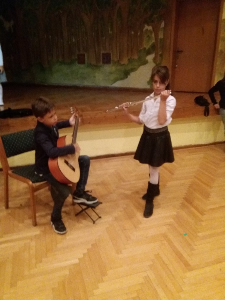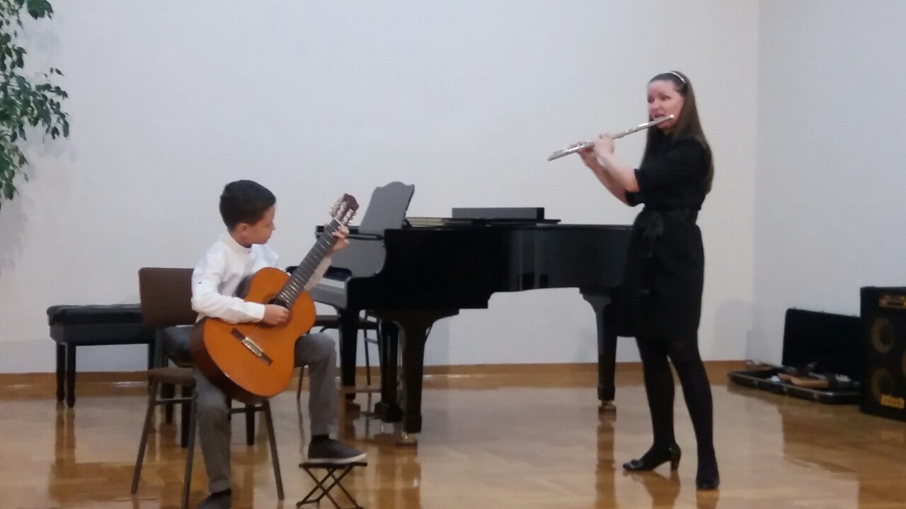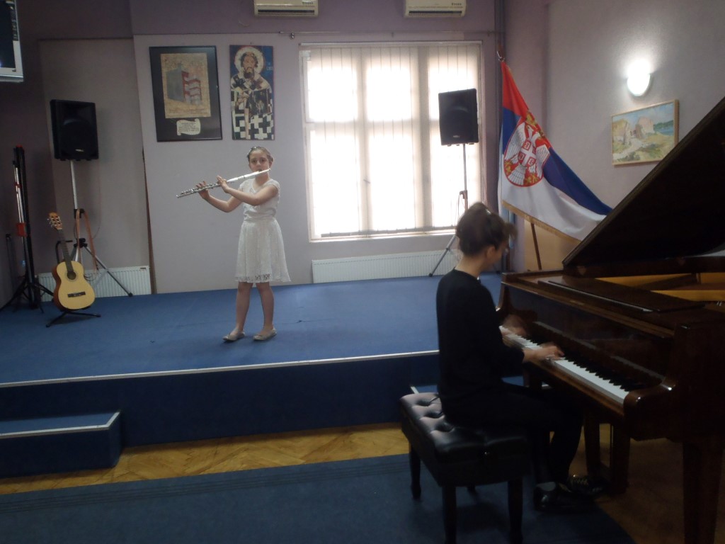 Koncert je otvorio najmlađi kamerni sastav muzičke škole - duo "NN" (Nađa Živković, flauta i Nikola Prica, gitara, klasa: Biljana Prica, prof. i Stevan Jović, prof.)