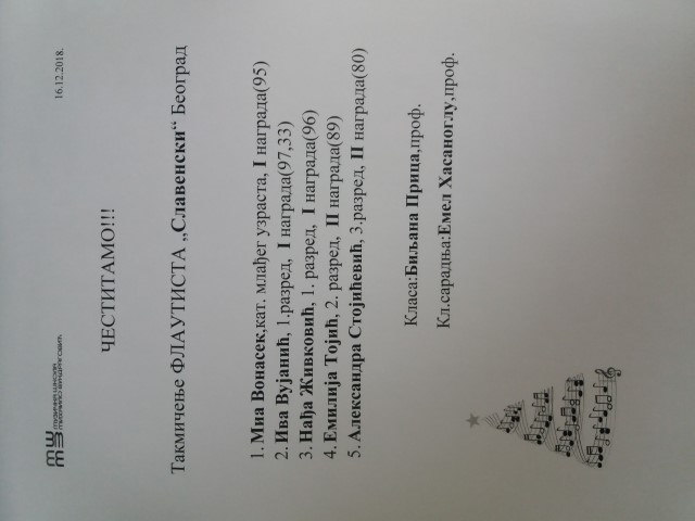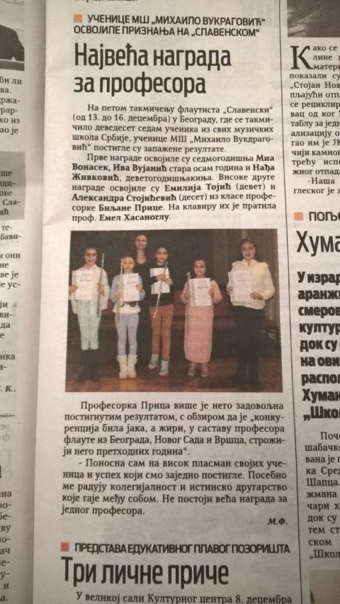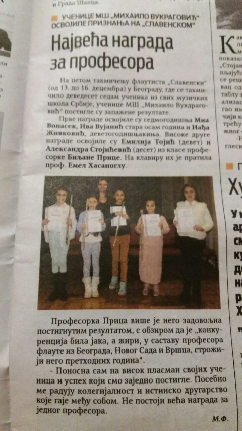 Na takmičenju u disciplini - flauta, učenice iz moje klase su ostvarile sjajan uspeh!
