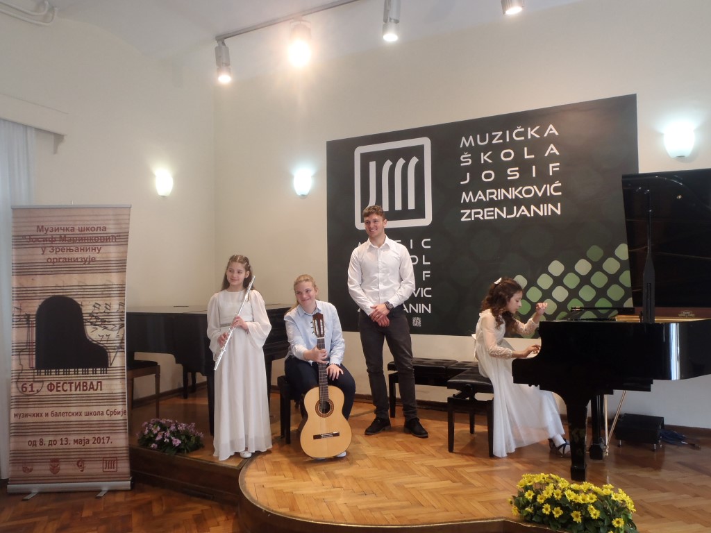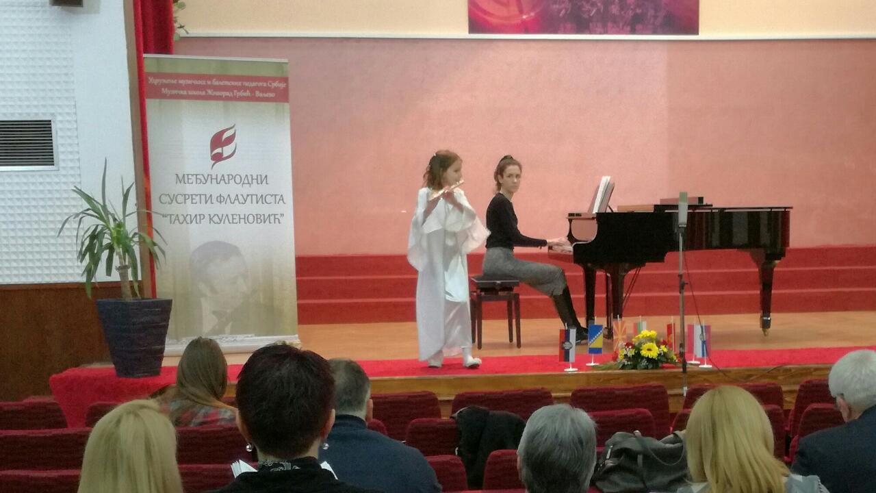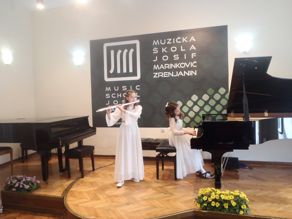 Kategorija kamerni sastav: duo "Little Quens" (Jana Ilić, III raz. flauta i Irina Brodić V raz. klavir, klasa: Biljana Prica, prof. i Helena Davidović, prof.) I nagrada 100 poena